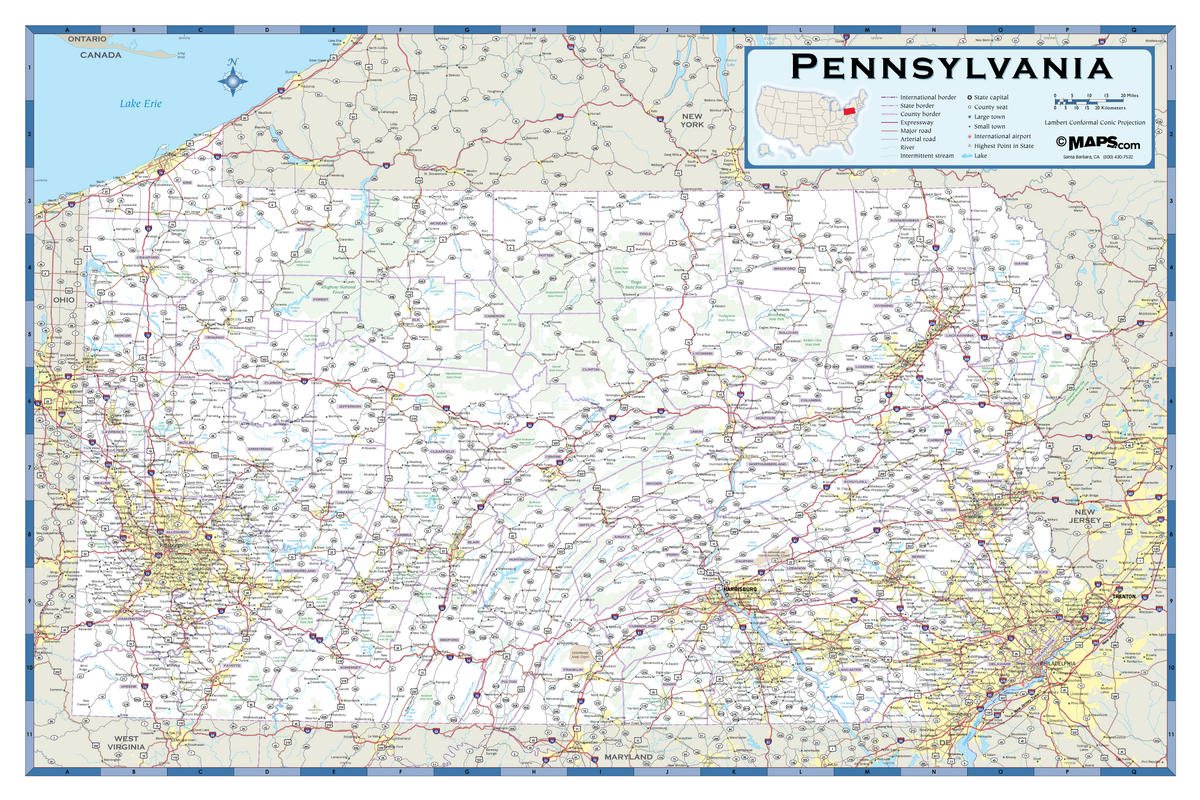 Map of Pennsylvania Cities and Roads GIS Geography